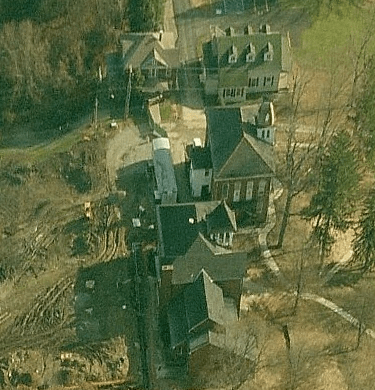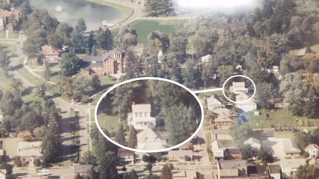 2010 Birds Eye Aerial, following the completion of Otto and Fran Walter Hall. The Music and Art Annexes can be seen behind it, as well as the President’s Manse and new garage. The new garage was demolished a few years following demolition of the Manse.